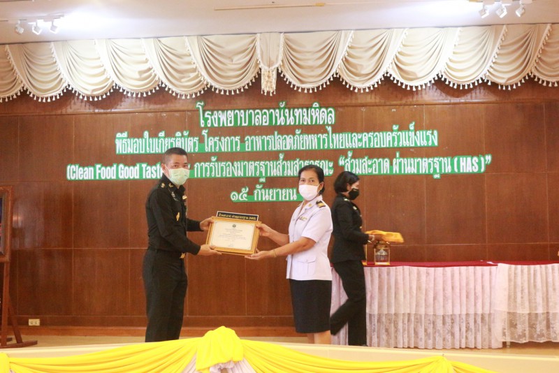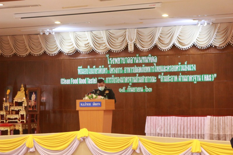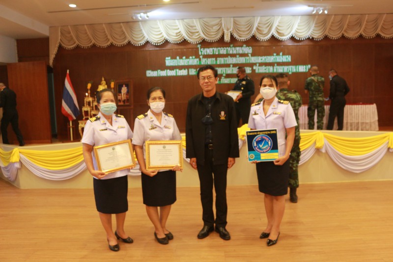 ผู้อำนวยการหัวหน้าฝ่ายบริหารทั่วไปและรองหัวหน้าฝ่ายบริหารทั่วไปรับเกียรติบัตรโครงการอาหารปลอดภัย ทหารไทยและครอบครัวแข็งแรงและส้วมสะอาดผ่านมาตรฐาน