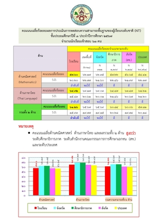 ตารางสรุปคะแนนเฉลี่ยร้อยละ Nt ปี 67