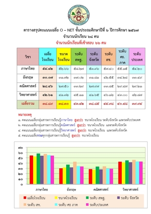 สรุปคะแนนเฉลี่ย O - Net ปี 67